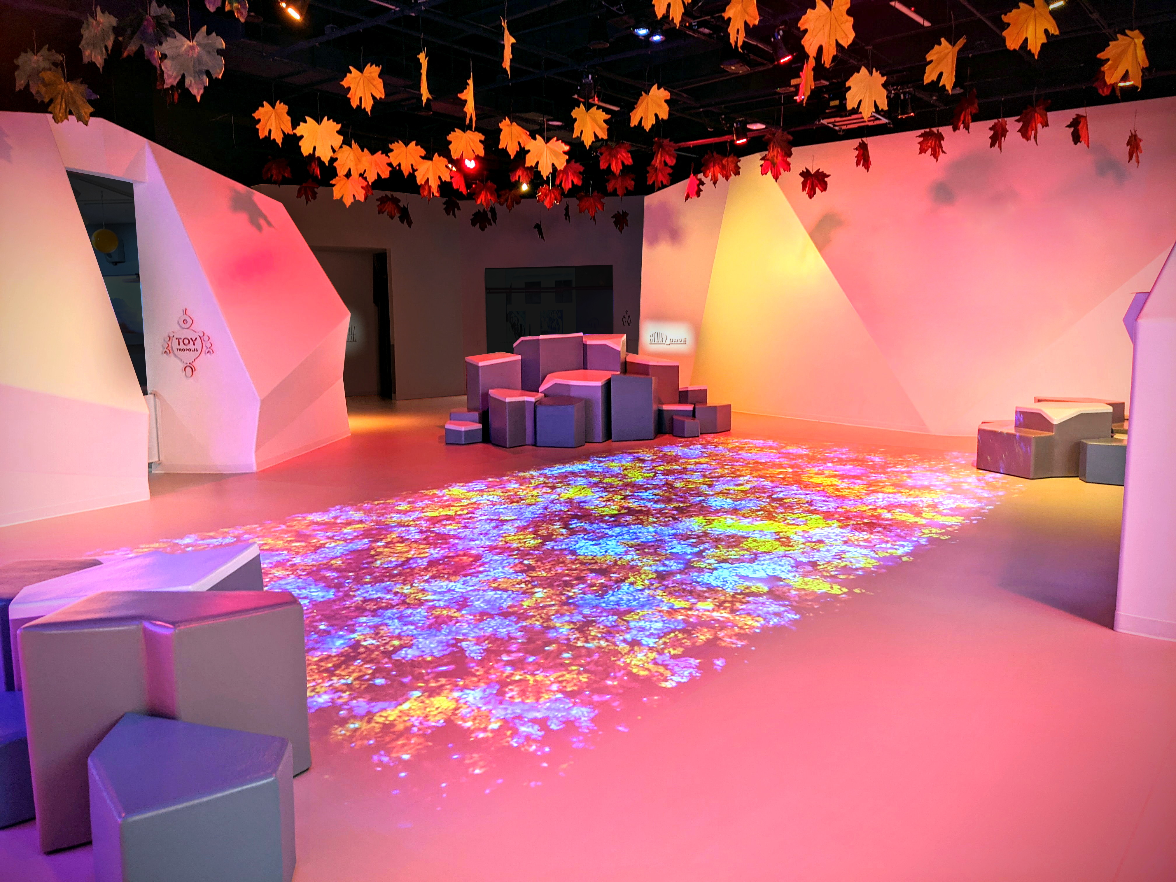 Immersive environments that use tech-enabled fabrications to respond to human touch or movement through lights, sound, and visuals.